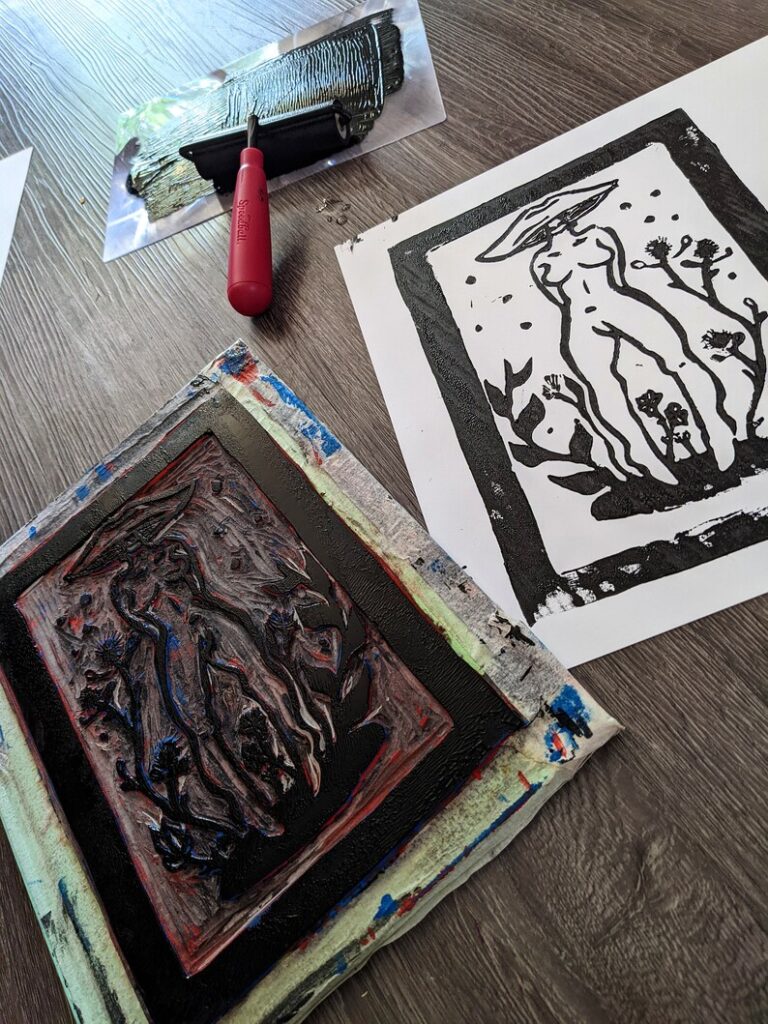 I make a variety of art ranging from traditional multimedia illustration, digital prints, carving and block printing or otherwise. I love creating pieces focuses on bright colors, eroticism, body positivity and diversity.
